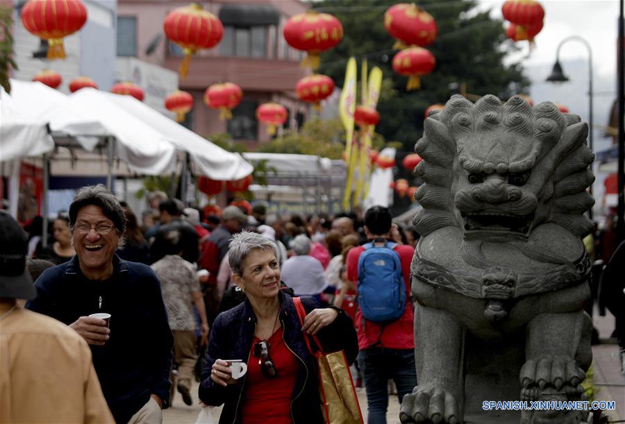Imagen del 17 de febrero de 2018, de personas participando durante la ceremonia para celebrar el A?o Nuevo chino, en el Barrio Chino de San José, Costa Rica. La comunidad china de Costa Rica celebró el sábado en San José el segundo día de la Fiesta de Primavera o A?o Nuevo Lunar chino, con un gran evento en el Barrio Chino de la capital costarricense. Música de ambos países, exhibición de artes marciales, venta de comidas chinas tradicionales, muestra de productos chinos y un ambiente festivo, fueron parte de esta celebración de la colonia china en Costa Rica. (Xinhua/Kent Gilbert)