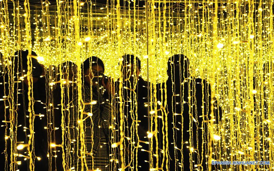 ANHUI, febrero 18, 2018 (Xinhua) -- Imagen de 17 de febrero de 2018, de personas visitando un espectáculos de linternas durante las vacaciones por el Festival de Primavera, en Bozhou, en la provincia de Anhui, en el este de China. (Xinhua/Zhang Yanlin)