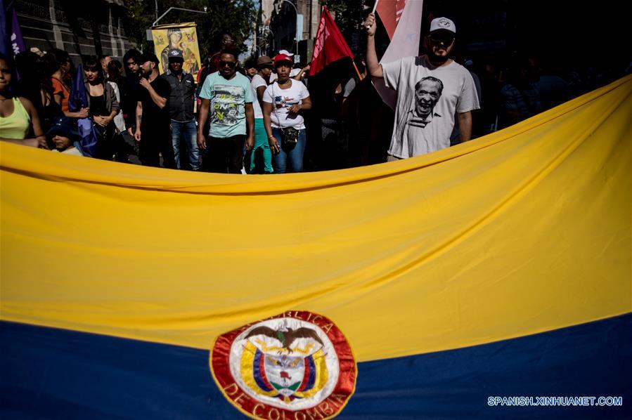 SANTIAGO, febrero 18, 2018 (Xinhua) -- Personas participan durante una marcha en demanda de la regularización de la situación legal de los migrantes, en Santiago, capital de Chile, el 18 de febrero de 2018. De acuerdo con información de la prensa local, cientos de migrantes marcharon el domingo por el centro de Santiago y llegaron a un costado del palacio de La Moneda para exigir una amnistía que regularice la permanencia en Chile de quienes no tienen permiso de residencia. La marcha fue organizada y anunciada por la Coordinadora Nacional de Inmigrantes, buscando que el gobierno tome nota y acelere el proceso de regularización de más de 200 mil extranjeros en Chile. (Xinhua/Jorge Villegas)