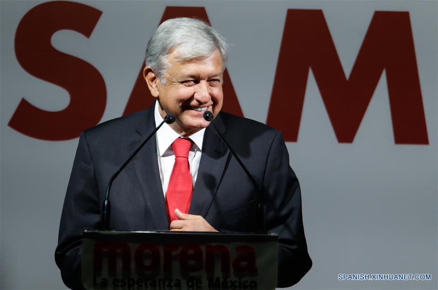 Andrés Manuel López Obrador toma protesta como candidato a la presidencia de México por el partido Movimiento Regeneración Nacional (MORENA), durante la Asamblea Nacional Electiva, en la Ciudad de México, capital de México, el 18 de febrero de 2018. (Xinhua/Francisco Ca?edo)
