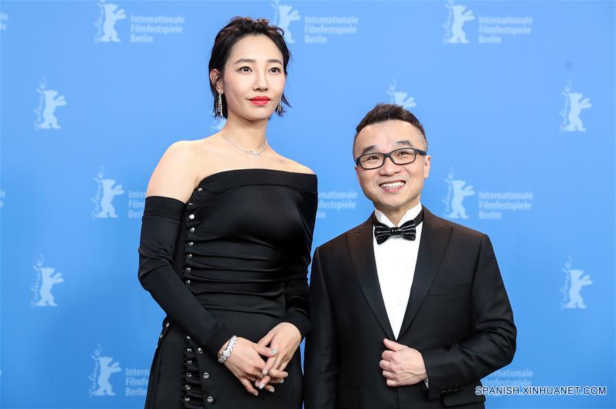 El director chino Raman Hui (d) y la actriz Bai Baihe, de la película "Monster Hunt 2", posan durante el 68 Festival Internacional de Cine de Berlín, en Berlín, capital de Alemania, el 18 de febrero de 2018. (Xinhua/Shan Yuqi)
