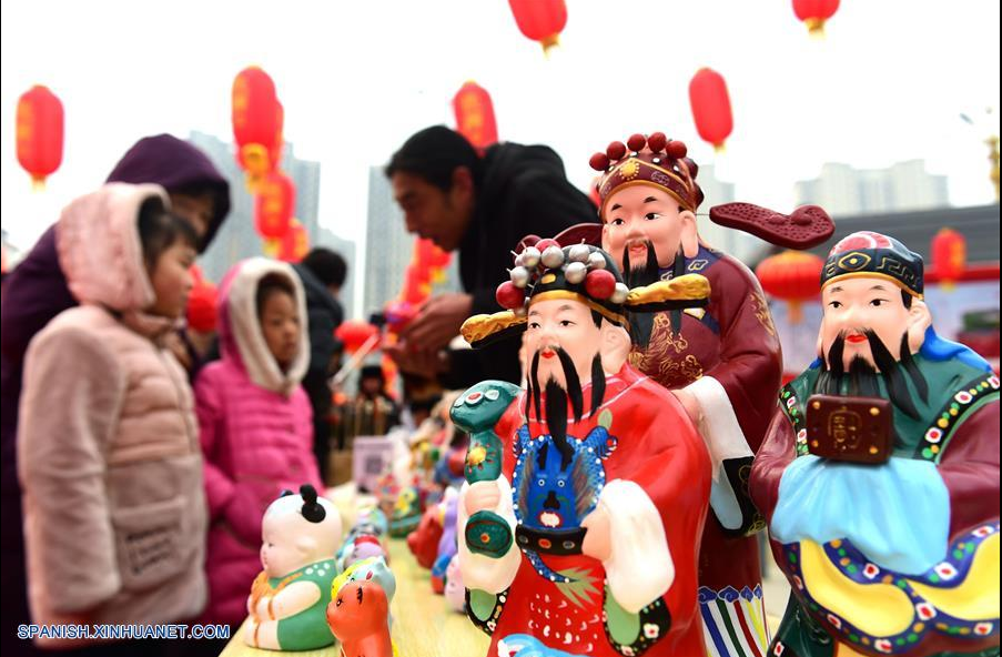 HEBEI, febrero 20, 2018 (Xinhua) -- Esculturas de arcilla con la forma del Dios de la Riqueza son captadas en el quinto día del A?o Nuevo Lunar chino, en Cangzhou, provincia de Hebei, en el norte de China, el 20 de febrero de 2018. En el quinto día del A?o Nuevo Lunar chino es el cumplea?os del Dios de la Riqueza y se cree que trae buena suerte a las personas. (Xinhua/Fu Xinchun)