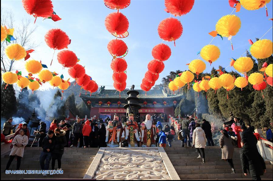 HEBEI, febrero 20, 2018 (Xinhua) -- Personas participan en una actividad de culto al Dios de la Riqueza en el quinto día del A?o Nuevo Lunar chino, en el condado de Qianxi, en la ciudad de Tangshan, provincia de Hebei, en el norte de China, el 20 de febrero de 2018. En el quinto día del A?o Nuevo Lunar chino es el cumplea?os del Dios de la Riqueza y se cree que trae buena suerte a las personas. (Xinhua/Wang Aijun)