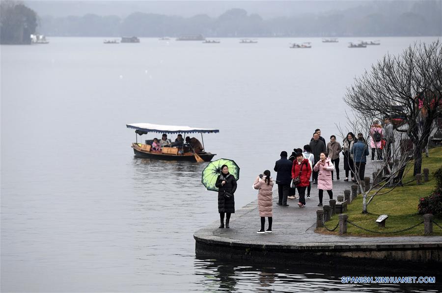 ZHEJIANG, febrero 21, 2018 (Xinhua) -- Turistas visitan el área escénica del Lago Oeste en el último día de una semana de vacaciones del Festival de Primavera de China, en Hangzhou, capital de la provincia de Zhejiang, en el este de China, el 21 de febrero de 2018. (Xinhua/Huang Zongzhi)