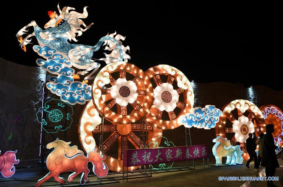 Imagen del 20 de febrero de 2018 de personas visitando un espectáculo de luz llevado a cabo para la celebración del A?o Nuevo Lunar, en Bayan Nur en la Región Autónoma de Mongolia Interior, en el norte de China. (Xinhua/Zhi Maosheng)