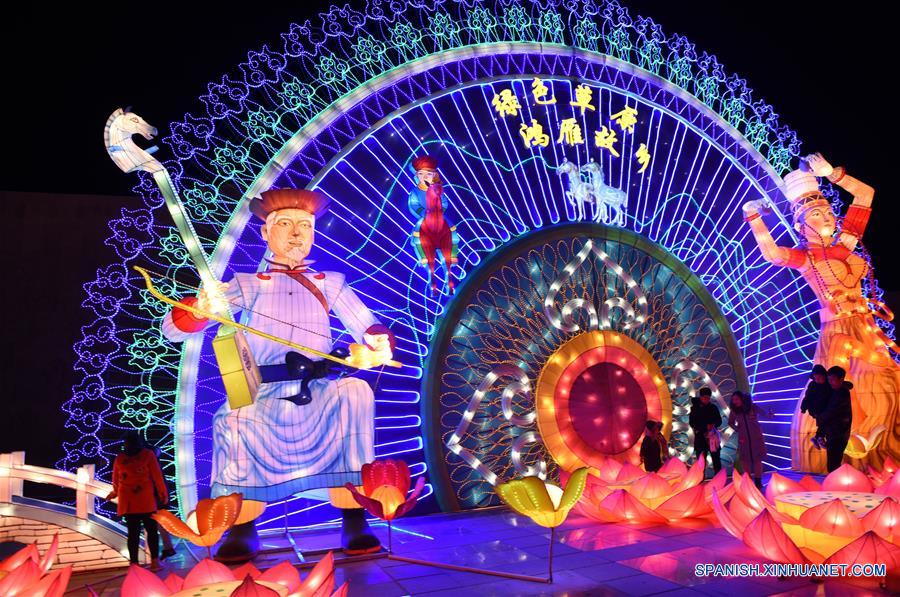 BAYAN NUR, febrero 21, 2018 (Xinhua) -- Imagen del 20 de febrero de 2018 de personas visitando un espectáculo de luz llevado a cabo para la celebración del A?o Nuevo Lunar, en Bayan Nur en la Región Autónoma de Mongolia Interior, en el norte de China. (Xinhua/Zhi Maosheng)