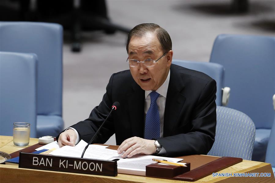 NUEVA YORK, febrero 21, 2018 (Xinhua) -- El ex secretario general de la Organización de las Naciones Unidas (ONU), Ban Ki-moon, asiste a una reunión del Consejo de Seguridad sobre los propósitos y principios de la Carta de la ONU en el mantenimiento de la paz y la seguridad internacional, en la sede de la ONU en Nueva York, Estados Unidos, el 21 de febrero de 2018. El secretario general de la ONU, Antonio Guterres, subrayó el miércoles la importancia del enfoque practivo de prevención en lugar de responder a la crisis. (Xinhua/Li Muzi)