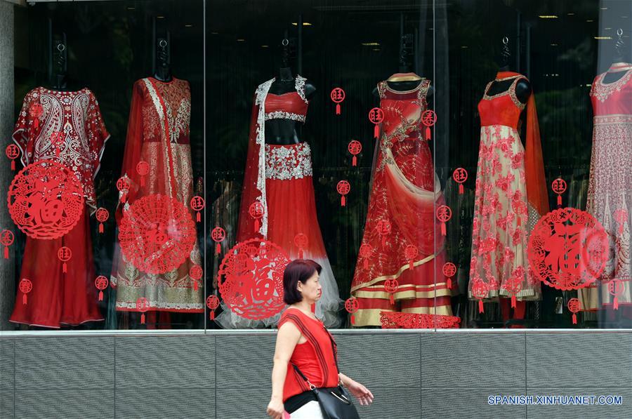 SINGAPUR, febrero 21, 2018 (Xinhua) -- Una mujer camina frente a una tieda de moda en el barrio de la Peque?a India de la ciudad de Singapur, capital de Singapur, el 21 de febrero de 2018. El Gobierno de Singapur subirá el Impuesto a los Bienes y Servicios (GST, por sus siglas en inglés) del 7 por ciento actual al 9 por ciento entre 2021 y 2025. (Xinhua/Then Chih Wey)