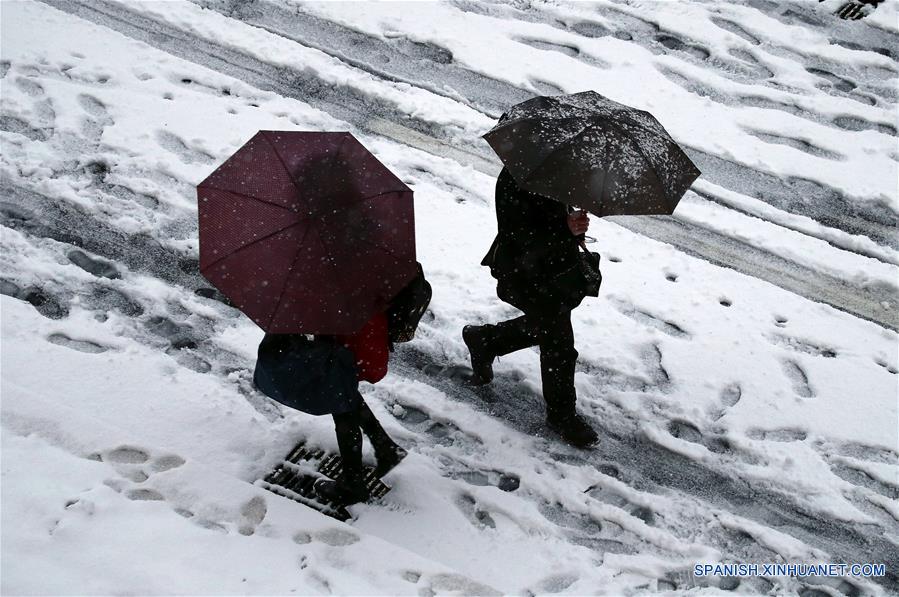 Personas caminan por una calle cubierta de nieve, en Roma, Italia, el 26 de febrero de 2018. De acuerdo con información de la prensa local, tanto Roma como el Vaticano amanecieron el lunes bajo nieve, evento que no ocurría desde hace 6 a?os, por lo que el comité operativo de Protección Civil italiano organizó una reunión para seguir la situación, pues la ola de frío, causada por la tormenta Burian, podría durar al menos 36 horas. (Xinhua/Evandro Inetti/ZUMAPRESS)