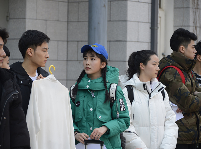 Los candidatos hacen fila para realizar el examen final en la Academia Central de Actuación, Beijing, 26 de febrero del 2018. [Foto: VCG]