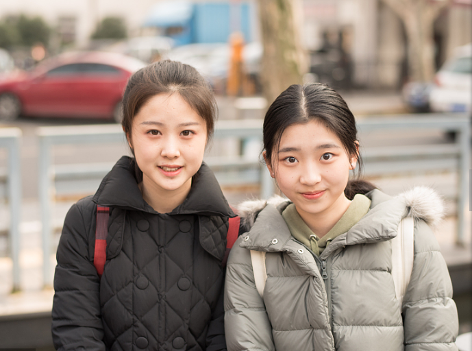 Dos candidatas aguardan su turno para realizar el examen final en la Academia Central de Actuación, Beijing, 26 de febrero del 2018. [Foto: VCG]
