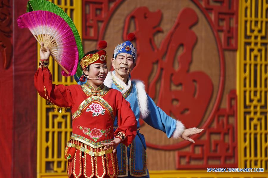 HOHHOT, febrero 26, 2018 (Xinhua) -- Artistas folclóricos cantan en una actividad cultural para darle la bienvenida al Festival de Linternas, en Hohhot, en la Región Autónoma de Mongolia Interior, en el norte de China, el 26 de febrero de 2018. (Xinhua/Wang Zheng)