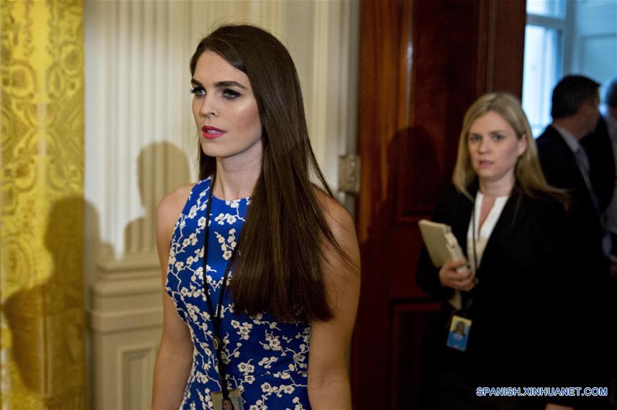 WASHINGTON, D.C., febrero 28, 2018 (Xinhua) -- Imagen de archivo del 22 de enero de 2017 de la directora de Comunicaciones de la Casa Blanca, Hope Hicks, llegando a una ceremonia de juramentación en el Salón Este de la Casa Blanca, en Washington, D.C., Estados Unidos. La directora de Comunicaciones de la Casa Blanca, Hope Hicks, dijo el miércoles que presentará su renuncia, con lo que se convierte en la tercera persona en dejar el cargo durante el mandato de Trump. (Xinhua/Andrew Harrer/Avalon/ZUMAPRESS)