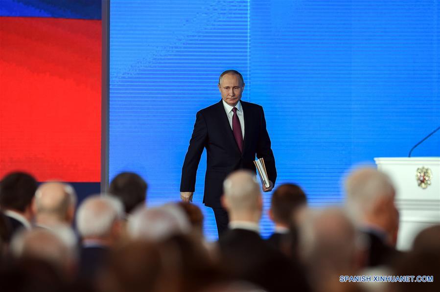 MOSCU, 1 mar (Xinhua) -- El presidente de Rusia, Vladimir Putin, demostró su poder como un líder fuerte en su discurso anual de hoy ante el Parlamento, cuando faltan dos semanas para la elección presidencial en la que buscará un cuarto período.