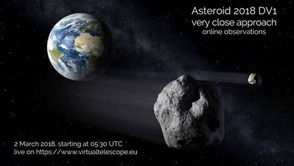 Cambridge, Massachusetts, 02/03/2018(El Pueblo en Línea) - Un asteroide del tama?o de un autobús ?rozará? prácticamente la Tierra ma?ana viernes (2 de marzo). La roca, denominada 2018 DV1, llegará a unos 105.000 km de nuestro planeta, a menos de un tercio de la distancia promedio que nos separa de la Luna. El encuentro será extremadamente cercano, pero se producirá con total seguridad, según ABC.
