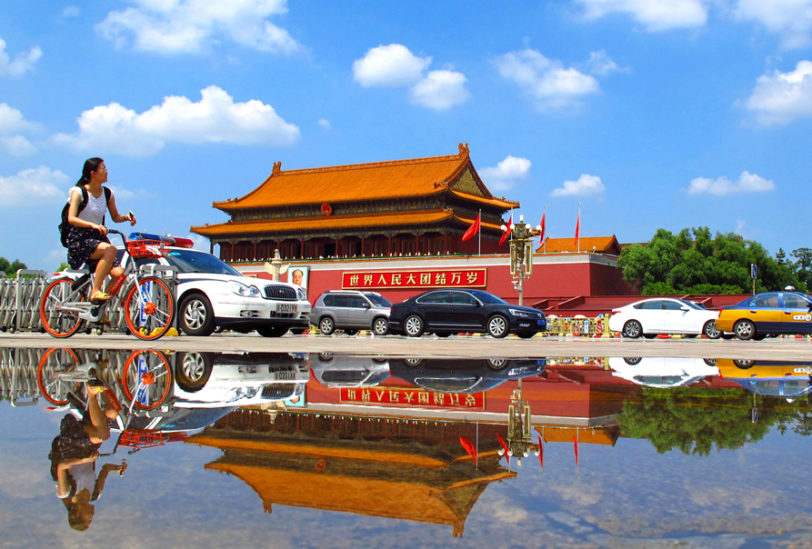 El 17 de agosto de 2017, después de la lluvia, las nubes blancas y el cielo azul embellecen aún más la Plaza de Tiananmen. Foto: Pueblo en línea