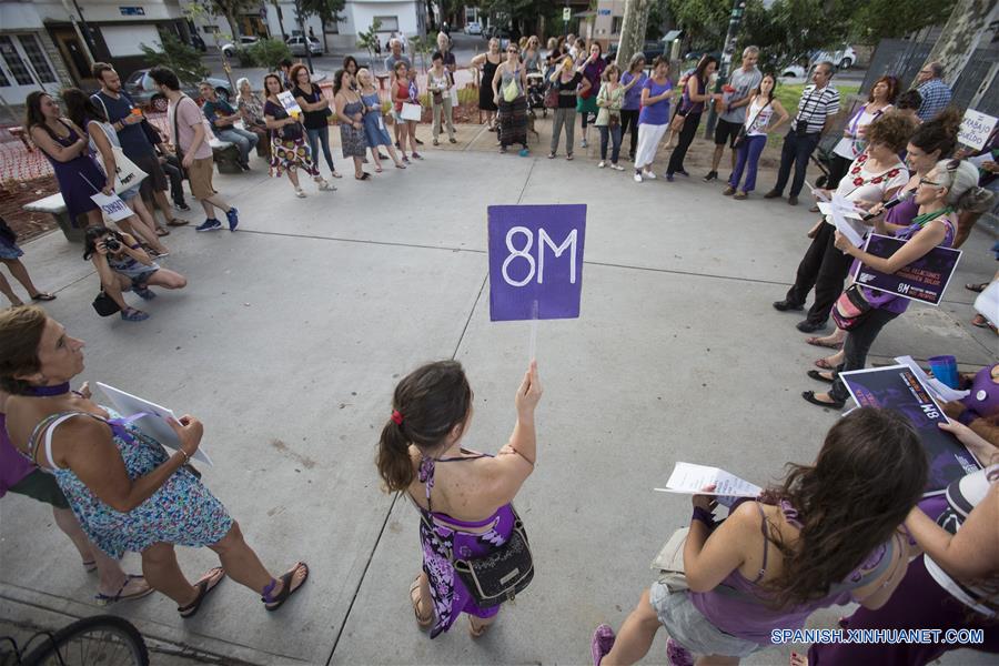 Mujeres participan en el evento "El 3M caminamos, el 8M paramos", en Buenos Aires, capital de Argentina, el 3 de marzo de 2018. De acuerdo con información de la prensa local, esta actividad, que incluyó una caminata y la lectura de poesía feminista, se realizó en el marco del Paro Internacional de Mujeres, que se realizará el próximo 8 de marzo en distintas ciudades alrededor del mundo. (Xinhua/Martín Zabala)