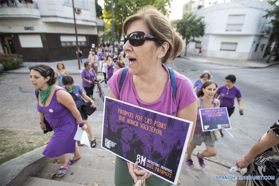 Mujeres participan en el evento "El 3M caminamos, el 8M paramos", en Buenos Aires, capital de Argentina, el 3 de marzo de 2018. De acuerdo con información de la prensa local, esta actividad, que incluyó una caminata y la lectura de poesía feminista, se realizó en el marco del Paro Internacional de Mujeres, que se realizará el próximo 8 de marzo en distintas ciudades alrededor del mundo. (Xinhua/Martín Zabala)