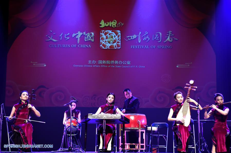 Imagen del 3 de marzo de 2018, de músicos tocando en la gala "Cultura de China, Festival de Primavera", para celebrar el A?o Nuevo chino en San Francisco, Estados Unidos. (Xinhua/Wu Xiaoling)