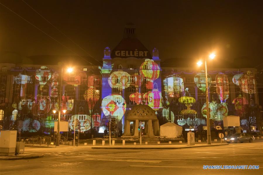 BUDAPEST, marzo 3, 2018 (Xinhua) -- Un trabajo de animaciones sobre China es proyectado en la fachada del Hotel Gellert, para celebrar el A?o del Turismo entre China y la Unión Europea (UE) en Budapest, Hungría, el 3 de marzo de 2018. (Xinhua/Attila Volgyi)