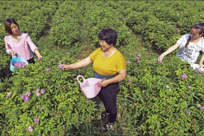 Aldeanos trabajan en una plantación de rosas ubicada en la Zona de Demostración de la Agricultura Moderna en Yongqing, provincia de Hebei. (Foto: Xinhua)