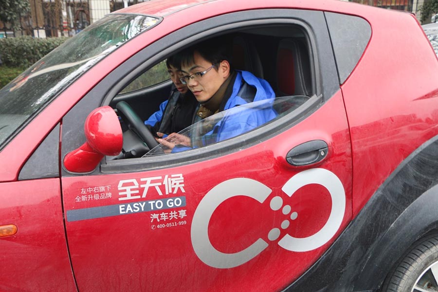 El 11 de febrero de 2018 por la ma?ana, el primer lote de 100 coches compartidos compactos, fáciles de mantener y bonitos hizo su debut en las calles de la ciudad condal de Tonglu, en la provincia de Zhejiang. La imagen muestra a un miembro del personal demostrando cómo usar un coche compartido. Fuente de la imagen: Visual China