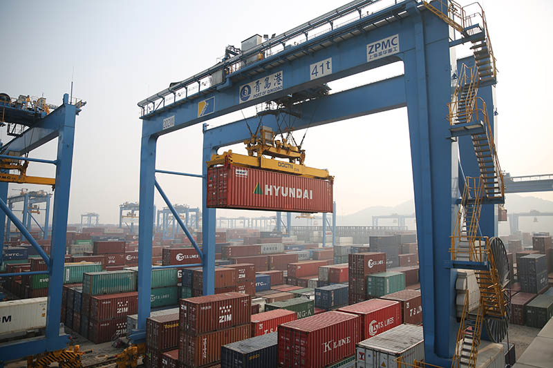 Vista de una terminal automatizada en el puerto de Qingdao, provincia de Shandong, el 17 de enero de 2018.