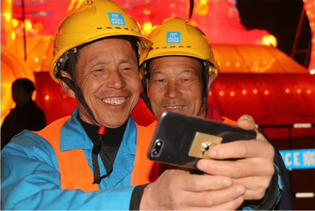 La imagen muestra a dos trabajadores en Wuhan, provincia de Hubei, haciéndose una foto con un teléfono móvil delante de las linternas del Festival de las Linternas. Fuente de la foto: Diario del Pueblo