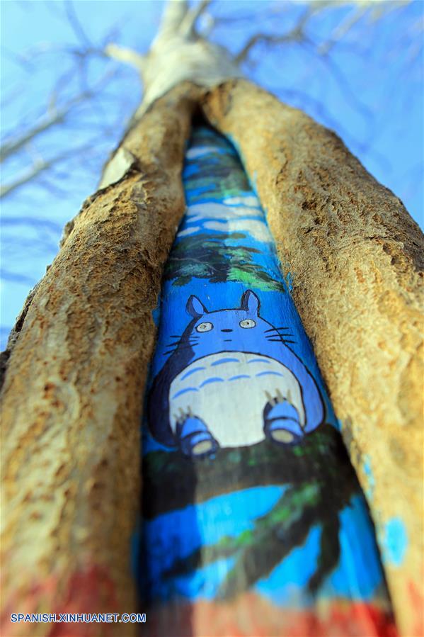 NINGXIA, marzo 10, 2018 (Xinhua) -- Vista de un dibujo pintado en un árbol en el parque Phoenix, en la ciudad de Yinchuan, en la Región Autónoma Hui de Ningxia, en el noroeste de China, el 10 de marzo de 2018. (Xinhua/Sui Xiankai)
