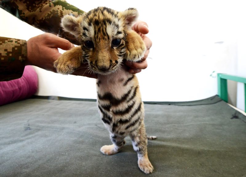 Ser el “tutor” de un peque?o tigrees una ardua ocupación. Afortudamente, el gracioso cachorro es protegido con esmero por el joven profesional Wang Xinyu. (Foto: China Daily/ Meng Yu/ Tan Yanzhu)