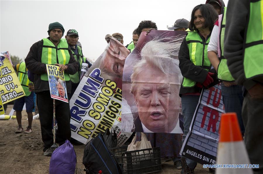 MEXICO, 13 mar (Xinhua) -- Oswaldo apoya una pi?ata con la forma del presidente estadounidense en la valla que separa Tijuana de San Diego como símbolo de protesta. "?Trump! ?Escucha! ?No queremos tu muro!", corea en grupo desde suelo mexicano.