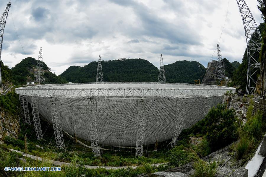 El FAST, localizado en una hondonada cárstica en la provincia suroccidental de Guizhou, fue completado en septiembre de 2016, y su área de recepción equivale a 30 campos de fútbol.
