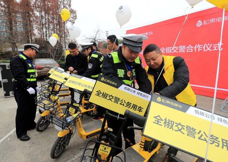 El 6 de diciembre de 2017, el Departamento de Policía de Tráfico del condado Quanjiao, en la provincia de Anhui, lanzó una campa?a oficial de baja emisión de carbono, para la que utilizó bicicletas compartidas como vehículos oficiales de patrulla para los policías de tráfico, evitando así que tráfico afecte al tiempo de patrullaje. La imagen muestra a los operadores ense?ando a los policías de tráfico cómo usar las bicicletas compartidas. Fuente de la foto: Shen Guo / Renmin Shijue