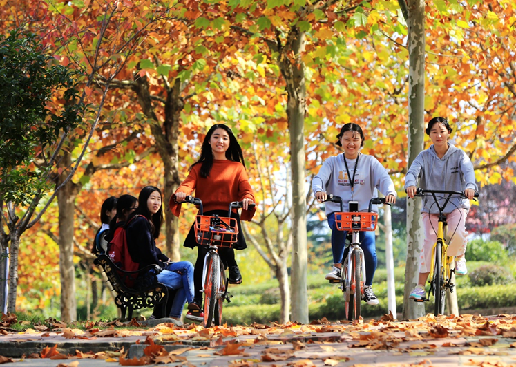 El 26 de octubre de 2017, en la ciudad de Leiyang, provincia de Hubei, imagen oto?al de varios estudiantes montando en bicicletas compartidas. Fuente de la imagen: Yang Dong / Renmin Shijue