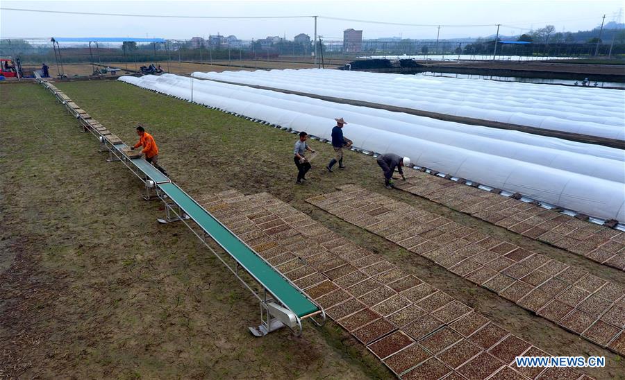 Los agricultores trabajan en un campo en Wuyi, provincia de Zhejiang, este de China, el 18 de marzo de 2018. (Xinhua / Zhang Jiancheng)