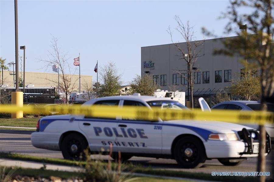 Un vehículo de la policía de Schertz permanece frente a un centro de distribución de FedEx luego de la explosión, en Schertz, cerca de San Antonio, estado de Texas, Estados Unidos, el 20 de marzo de 2018. Un trabajador de la empresa de paquetería FedEx resultó herido la ma?ana del martes por la explosión de un paquete en el centro de distribución de FedEx Corp. cerca de San Antonio, a unos 310 kilómetros al oeste de Houston, en el estado de Texas, sur de Estados Unidos, informaron las autoridades. (Xinhua/San Antonio Express-News/ZUMAPRESS)