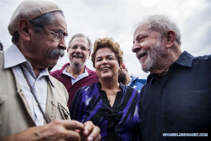 RIO GRANDE DO SUL, marzo 22, 2018 (Xinhua) -- El expresidente de Brasil, Luiz Inácio Lula da Silva (d), y la expresidenta brasile?a, Dilma Rousseff (2-d), conversan con un hombre durante una visita a la ciudad de Sao Miguel das Missoes, en el estado de Rio Grande do Sul, Brasil, el 22 de marzo de 2018. La Corte Suprema brasile?a aplazó el miércoles al próximo 4 de abril el juicio sobre el "habeas corpus" presentado por la defensa del expresidente Luiz Inácio Lula da Silva (2003-2010), condenado a 12 a?os y un mes de prisión en segunda instancia, y decidió que el exmandatario no puede ser apresado antes de analizar el recurso. (Xinhua/Ricardo Marchetti/Agencia F8/AGENCIA ESTADO)