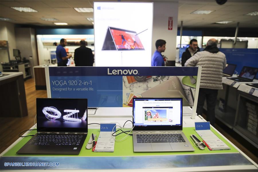 NUEVA YORK, marzo 22, 2018 (Xinhua) -- Ordenadores portátiles hechos en China son exhibidos para su venta en una tienda Best Buy, en Nueva York, Estados unidos, el 22 de marzo de 2018. Las acciones en Estados Unidos registraron el jueves una fuerte caída. A pesar de las advertencias de grupos empresariales y de expertos en comercio, el presidente de Estados Unidos, Donald Trump, firmó el jueves un memorándum presidencial que podría imponer aranceles de hasta 60,000 millones de dólares estadounidenses a las importaciones provenientes de China, la acción unilateral más reciente que representa una amenaza para el comercio global. (Xinhua/Wang Ying)