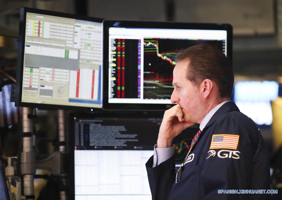NUEVA YORK, marzo 22, 2018 (Xinhua) -- Un trabajador labora en la Bolsa de Valores de Nueva York, en Nueva York, Estados Unidos, el 22 de marzo de 2018. Las acciones en Estados Unidos registraron el jueves una fuerte caída. El índice Dow Jones perdió más de 700 puntos en las transacciones finales luego de que el presidente estadounidense Donald Trump anunció planes para imponer aranceles a los productos chinos importados. (Xinhua/Wang Ying)