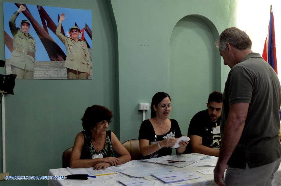 LA HABANA, marzo 25, 2018 (Xinhua) -- Imagen del 26 de noviembre de 2017 del vicepresidente de Cuba, Miguel Díaz Canel Bermúdez (d), registrándose para emitir su voto en un colegio electoral en el municipio de Playa, en La Habana, capital de Cuba. Cuba, con la formación el domingo de los poderes provinciales, continúa el proceso que deberá concluir el próximo 19 de abril en la constitución de un nuevo gobierno y el retiro del actual presidente Raúl Castro. La constitución de las 15 asambleas provinciales del Poder Popular es el penúltimo paso de ese proceso que ahora involucra a los 1.265 delegados elegidos en los comicios del pasado 11 de marzo. Después de jurar y tomar posesión de sus cargos, esos delegados eligen mediante voto secreto a los presidentes y vicepresidentes de esos órganos de gobierno territorial. (Xinhua/Joaquín Hernández)