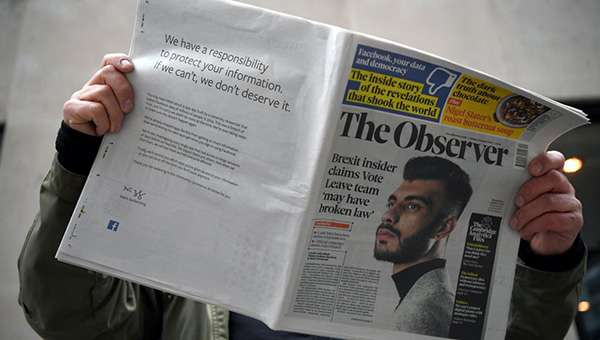 Beijing, 26/03/2018(El Pueblo en Línea) - El presidente de la red social más popular del mundo decidió recorrer a la prensa británica para anunciar sus disculpas tras conocerse el escándalo de la fuga de datos. El director ejecutivo de Facebook, Mark Zuckerberg, se disculpó el domingo ante los británicos por “romper su confianza” y publicó anuncios a página completa en periódicos británicos después de conocerse que una consultora política obtuvo datos sobre 50 millones de usuarios, según La Vanguardia.