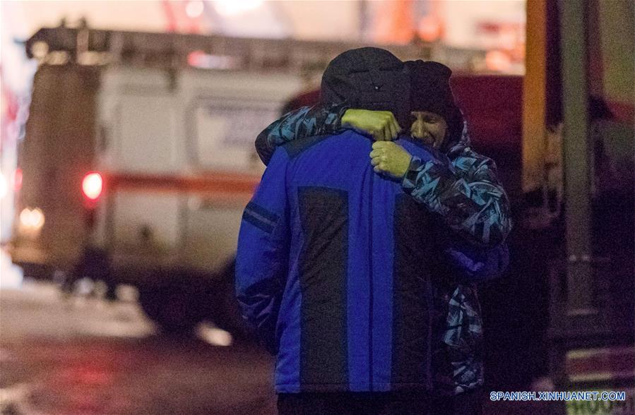 Personas reaccionan cerca del centro comercial donde se registró un incendio en la ciudad de Kemerovo, en el centro de Rusia, el 25 de marzo de 2018. Al menos 12 personas murieron y 69 desaparecieron, incluyendo 40 ni?os, en el incendio de un centro comercial de la ciudad rusa de Kemerovo, informó la agencia TASS. (Xinhua/Aikin Danil/TASS/ZUMAPRESS)