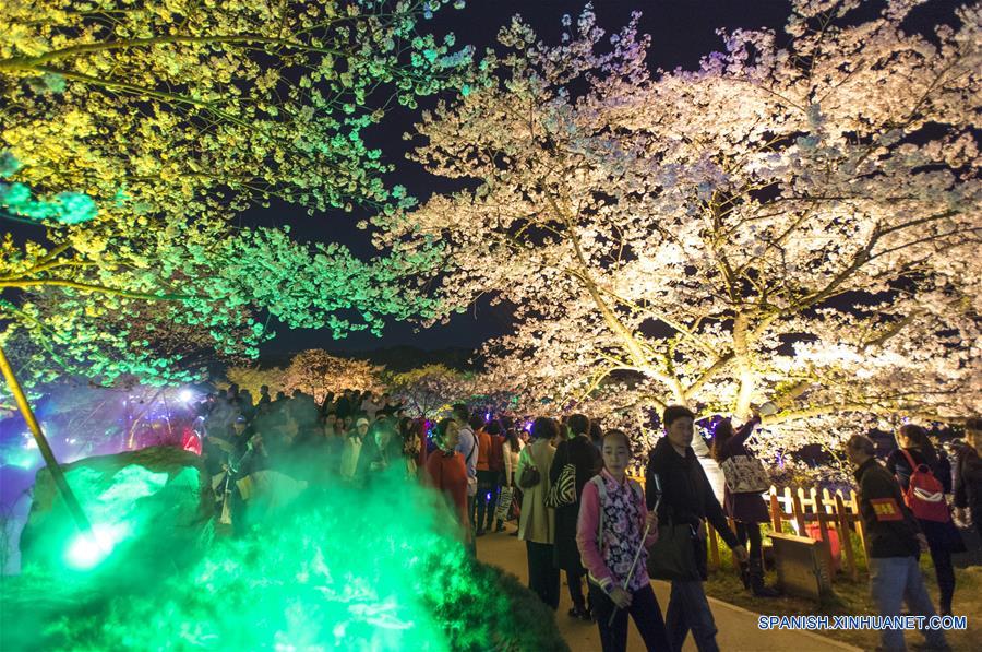 HUBEI, marzo 26, 2018 (Xinhua) -- Turistas observan flores de cerezo en el Lago del Este en Wuhan, en la provincia de Hubei, en el centro de China, el 26 de marzo de 2018. (Xinhua/Xiong Qi)