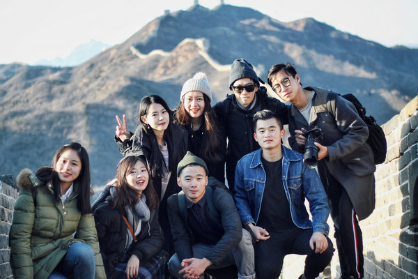 Estudiantes de Taiwán, Hong Kong y Macao que estudian en la Universidad Renmin de China visitan la Gran Muralla China de Beijing. [Foto: proporcionada]