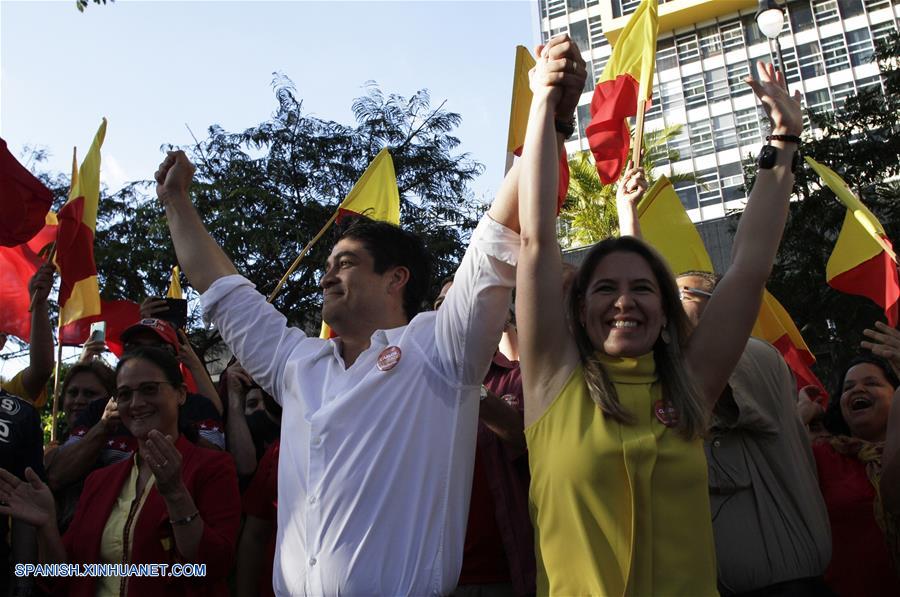 SAN JOSE, abril 1, 2018 (Xinhua) -- Imagen de archivo del 28 de enero de 2018 del candidato presidencial por el Partido Acción Ciudadana (PAC) de Costa Rica, Carlos Alvarado (i), y su esposa, Claudia Dobles (d), participando durante el cierre de campa?a, en San José, Costa Rica. El candidato del Partido Acción Ciudadana (PAC) de Costa Rica, Carlos Alvarado, ganó el domingo la presidencia de Costa Rica al obtener el 60,6 por ciento de los votos, según el primer corte del Tribunal Supremo de Elecciones (TSE), con un 90,62 por ciento de las juntas receptoras de votos escrutadas.(Xinhua/Kent Gilbert)