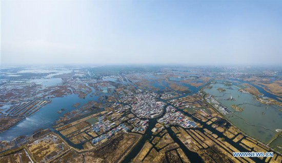 Esta foto aérea tomada el 29 de marzo de 2018, muestra una aldea en medio del lago Baiyangdian en la Nueva área Xiongan, ubicada al norte de la provincia de Hebei, China. La Nueva área Xiongan fue establecida el 1 de abril del 2017 como una nueva zona económica. Está ubicada a unos 100 kilómetros al suroeste de Beijing. Después de la Zona Económica Especial de Shenzhen y la Nueva Zona Pudong en Shangha, Xiongan es la tercera en importancia nacional. China se propone construir una ciudad de bajas emisiones de carbono, entorno inteligente, habitable, mundialmente influyente y donde la gente y la naturaleza coexistan en armonía. (Foto: Xinhua/Shen Hong)