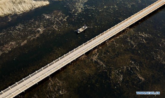 En esta foto aérea, tomada el 29 de marzo de 2018, un trabajador sanitario limpia el lago Baiyangdian en la Nueva área Xiongan, ubicada al norte de la provincia de Hebei, China. La Nueva área Xiongan fue establecida el 1 de abril del 2017 como una nueva zona económica. Está ubicada a unos 100 kilómetros al suroeste de Beijing. Después de la Zona Económica Especial de Shenzhen y la Nueva Zona Pudong en Shangha, Xiongan es la tercera en importancia nacional. China se propone construir una ciudad de bajas emisiones de carbono, entorno inteligente, habitable, mundialmente influyente y donde la gente y la naturaleza coexistan en armonía. (Foto: Xinhua/Shen Hong)