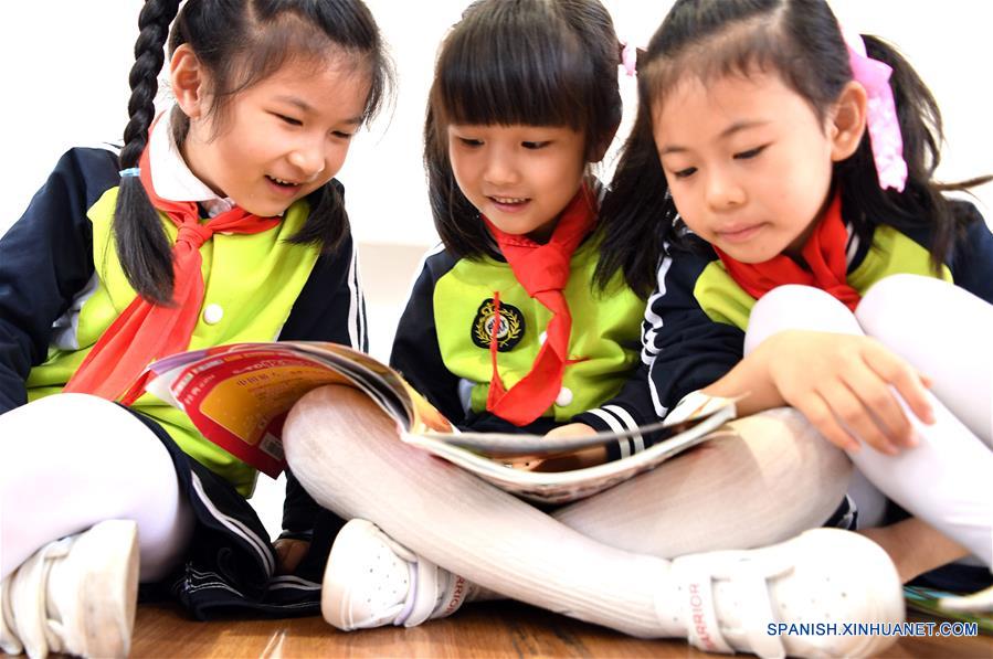 NANNING, abril 2, 2018 (Xinhua) -- Ni?as leen un libro en el marco del Día Internacional del Libro Infantil, en la Escuela Primaria Camino de Yulan, en la ciudad de Nanning, capital de la Región Autónoma Zhuang de Guangxi, en el sur de China, el 2 de abril de 2018. (Xinhua/Zhou Hua)