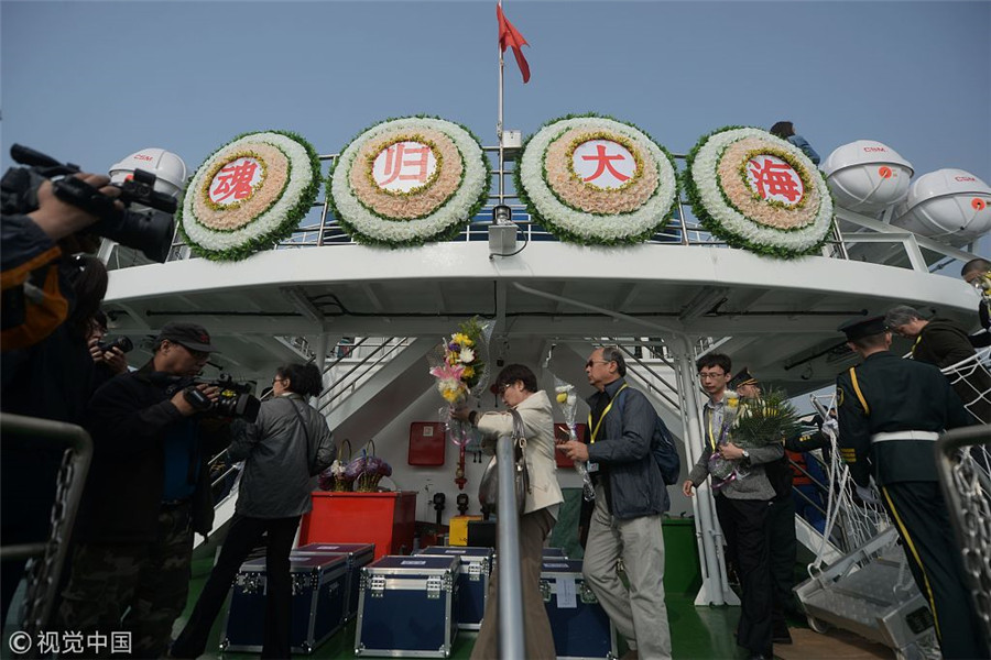 Se celebra un entierro en el mar celebrado en el barco Guobin 9, el 2 de abril de 2018. [Foto / Xinhua]