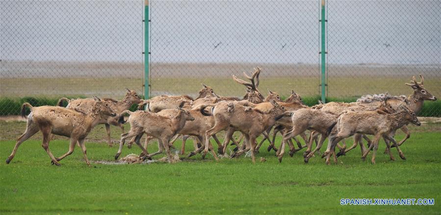 Los ciervos milú son una especie bandera del ecosistema de humedal y su liberación ayudará promover la biodiversidad y proteger el medio del humedal, se?aló el subdirector de la Asociación de Conservación de la Fauna de China, Zhang Xiwu.